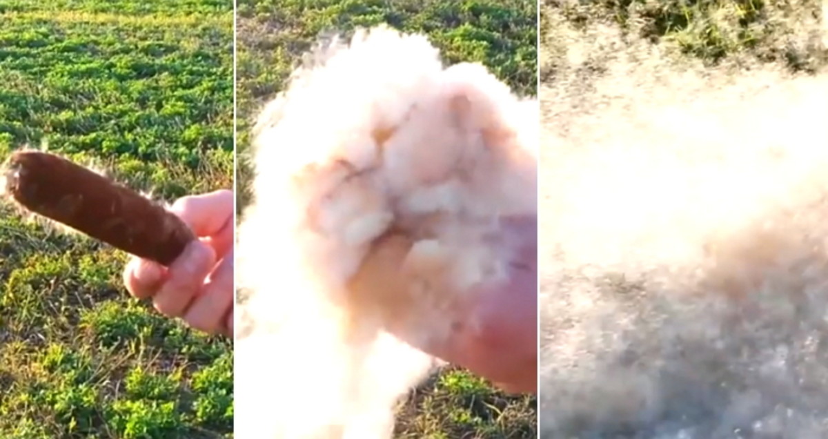 지난 16일(현지 시간) 페이스북 계정 'Blunt Kommunity'에는 반으로 가르는 순간 솜털 같은 홀씨를 쏟아내는 식물의 모습이 공개됐다.