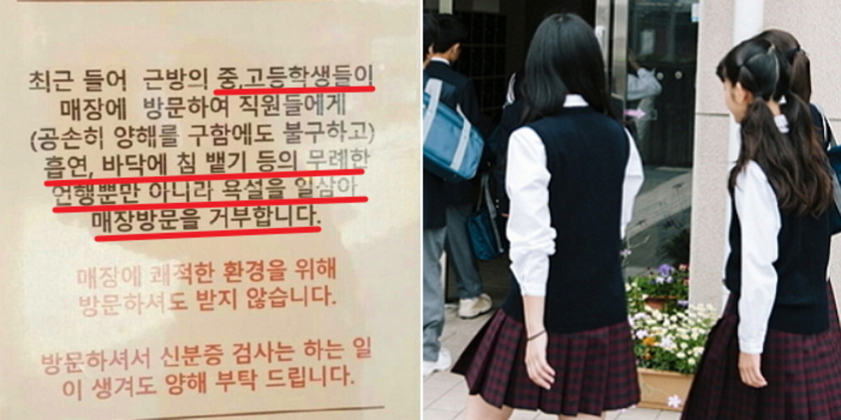 해당 커피 전문점 측은 "최근들어 인근의 중·고등학생들이 매장을 방문해 직원들에게 욕설, 무례한 언행, 바닥에 침뱉기 등을 일삼았다"며 청소년 출입을 거절하는 이유를 밝혔다.