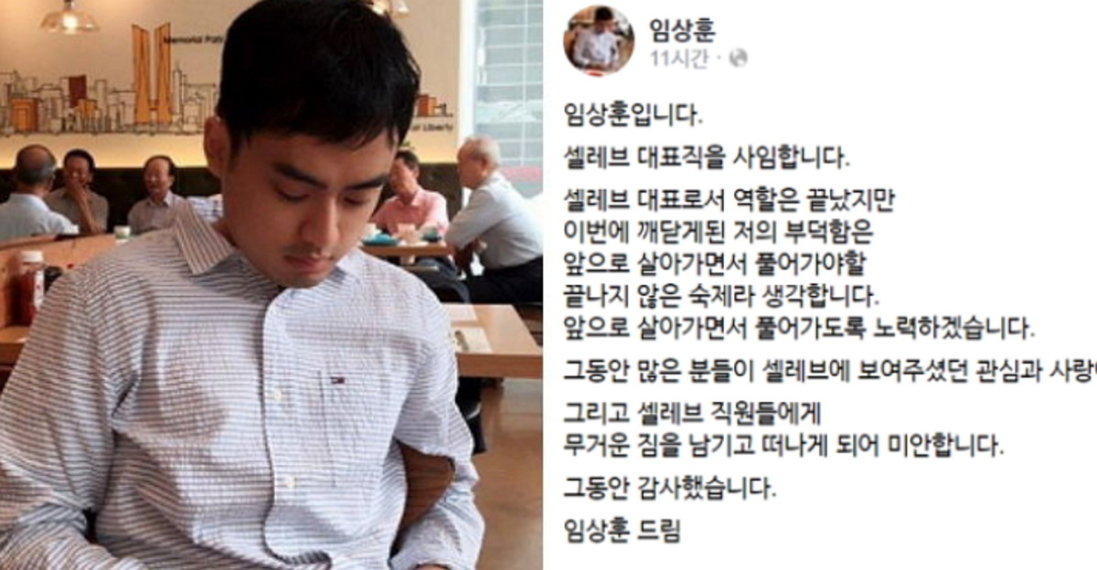 그러면서 "셀레브에 보여주셨던 관심과 사랑이 저로 인해 변치 않기를 바란다"며 "셀레브 직원들에게 무거운 짐을 남기고 떠나게 되어 미안하다"고 덧붙였다.