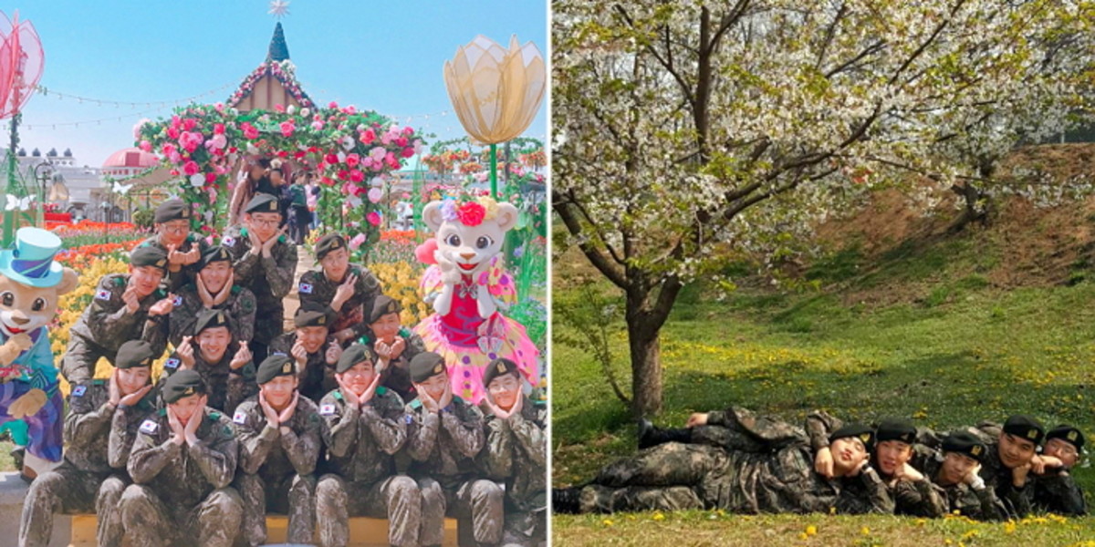 해당 사진 속 장병들은 일반적으로 여자친구와 많이 찾는 에버랜드 튤립축제에 전우들과 함께 방문했다.