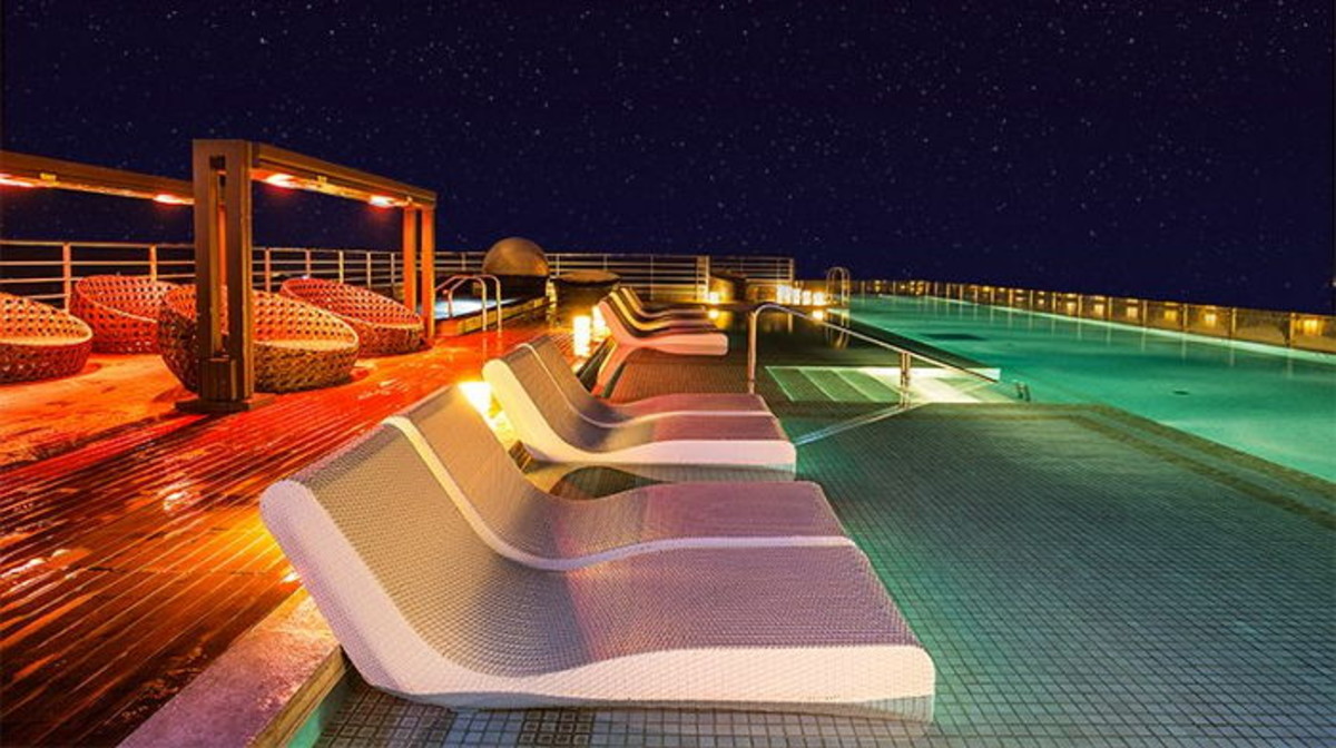 낮에는 하늘을 배경으로 아름다운 제주 자연에 둘러싸여 있는 루프탑 태닝존에서 여유로운 휴식을 밤에는 루프탑 '스카이피니티' 풀에서 쏟아지는 별빛 아래서 스위밍을 즐길 수 있다.