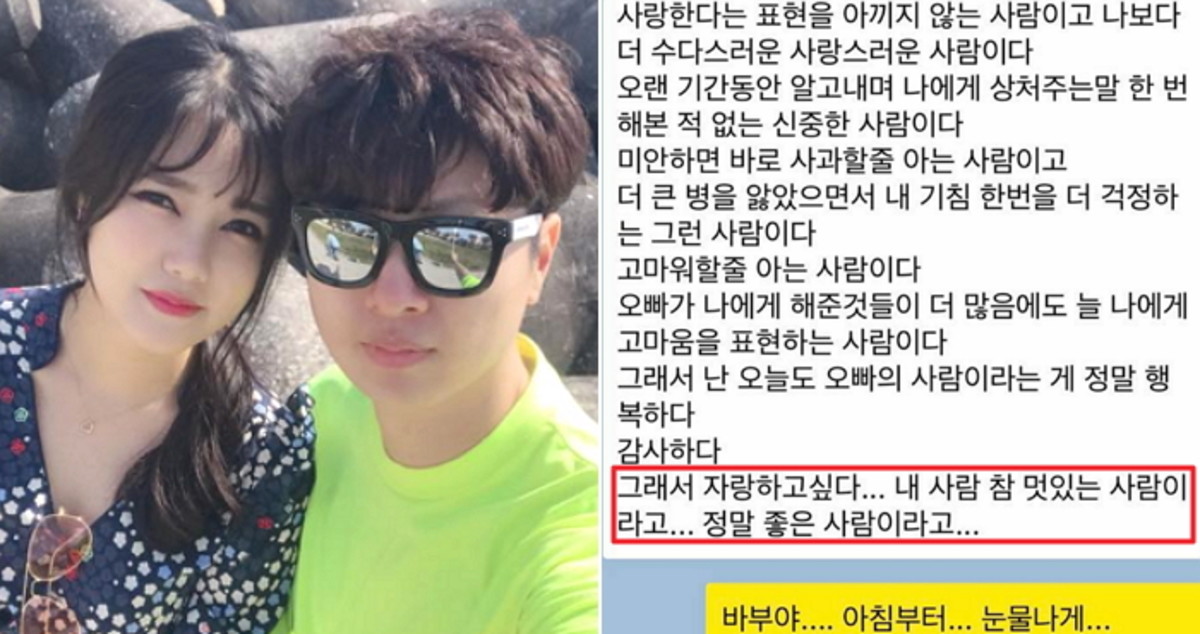 지난 26일 유상무가 10월 말 공식적으로 결혼하겠다고 발표한 가운데 그의 예비 신부 작곡가 김연지가 보낸 사랑이 가득 담긴 카카오톡 메시지가 화제가 되고 있다.