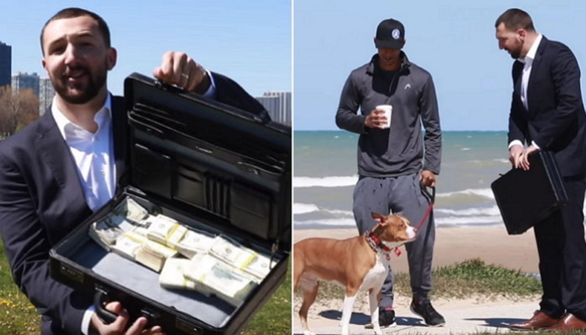 이 유튜버는 검은색 수트 차림으로 현금 100,000달러(한화 약 1억 777만원)든 서류 가방을 들고 공원으로 향했다.