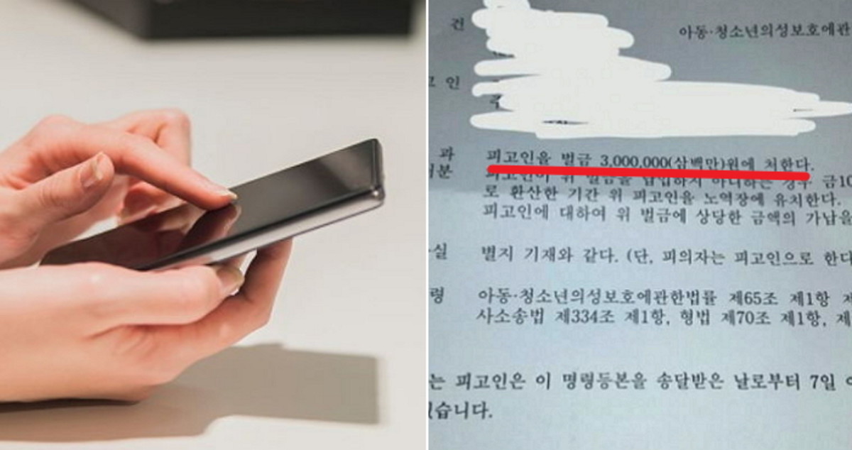 사진에는 '범죄사실'이라는 제목과 함께 '피고인을 벌금 3백만원에 처한다'는 판결문 내용이 담겼다.
