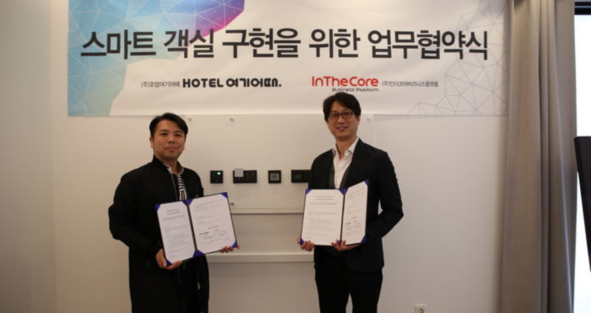 HOTEL여기어때는 최근 IoT 전문기업 '인더코어 비즈니스 플랫폼(이하 인더코어)'과 '스마트 객실 구현을 위한 업무협약'을 체결했다.