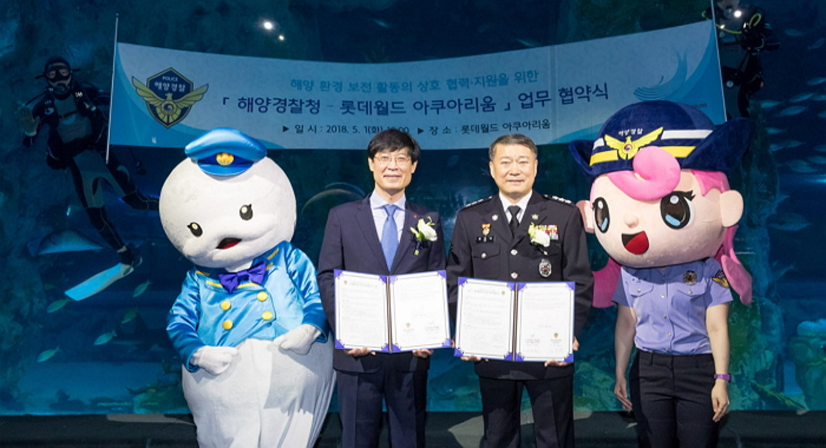 1일 롯데월드 아쿠아리움은 해양경찰청과 해양환경보호활동 공동 추진을 위한 업무 협약을 맺었다.