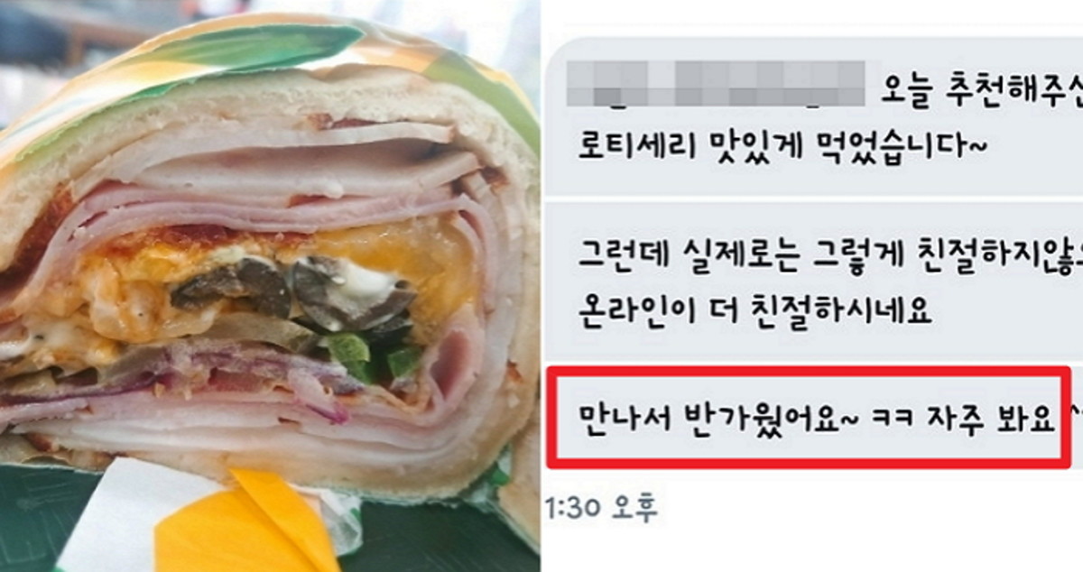 남성은 메시지에서 "추천해주신 대로 로티세리 맛있게 먹었다"면서 "그런데 실제로는 그렇게 친절하지 않으시다"고 했다.