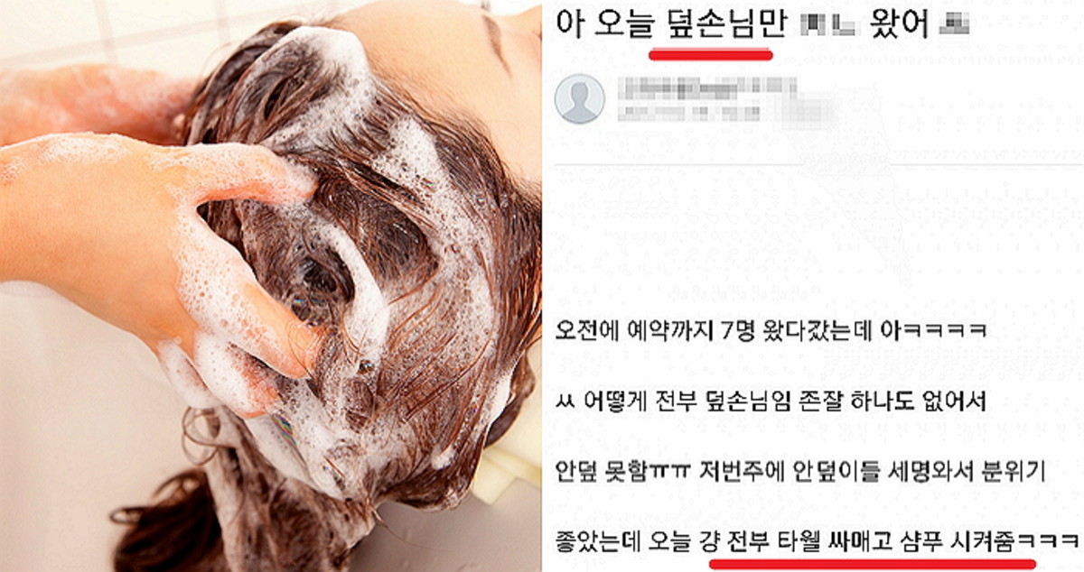 그는 '아 오늘 덮손님만 왔어'라는 제목으로 "어떻게 전부 덮손님이냐. 존잘 하나도 없어서 안덮 못했다. 오늘 그냥 전부 타월 싸매고 샴푸 시켰다"라고 적었다.