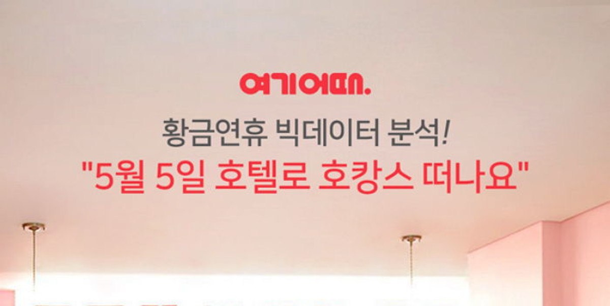 종합숙박 앱 1위 서비스 여기어때를 운영하는 위드이노베이션이 연휴 전날인 5월 4일부터 어린이날 대체휴일로 지정된 7일까지 나흘간 숙소예약 데이터를 기반으로 '숙소 이용 행태'를 조사한 결과다.