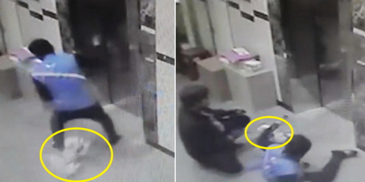 영상에서 택배기사 A씨는 배송할 물건을 잔뜩 들고 걸어가던 중 한 할머니가 강아지 목줄을 끌고 엘리베이터에 들어가는 모습을 보게 된다.