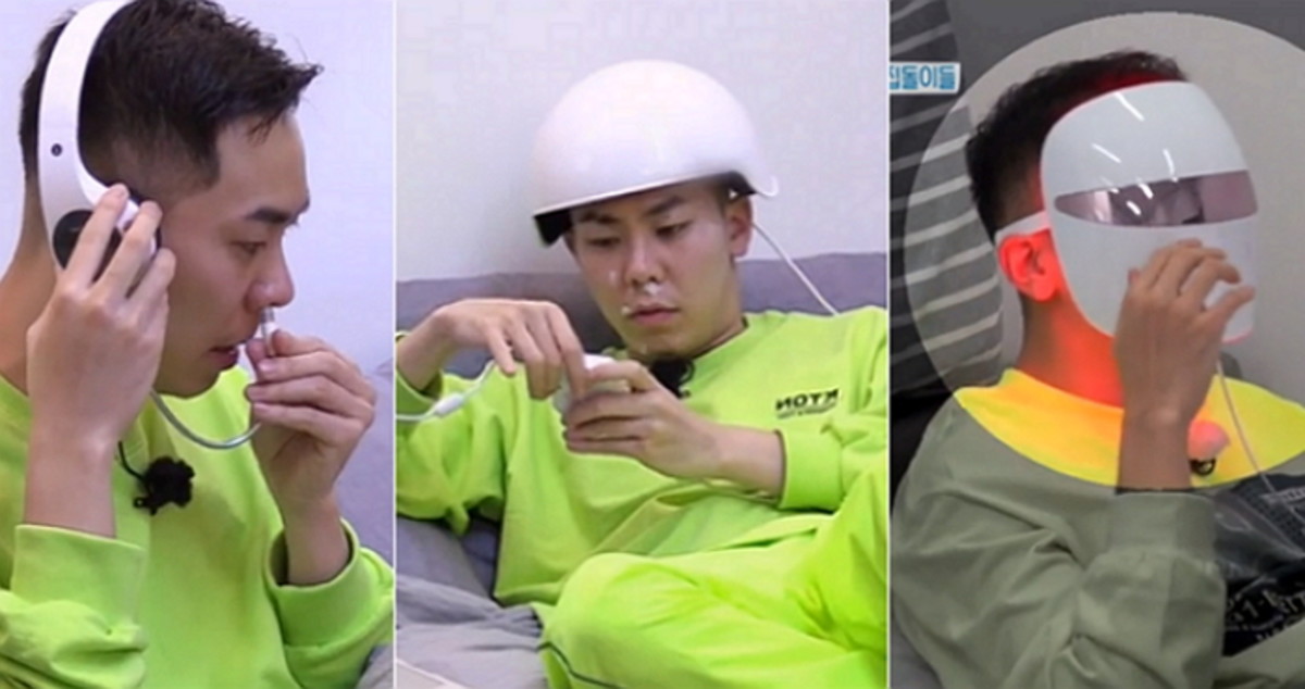 비염 치료기와 피부 관리 제품을 잇는 이번 아이템은 바로 '두피 관리 헬멧'이었다. 관리 시간까지 맞추는 로꼬는 익숙한 듯 편안해보였다.