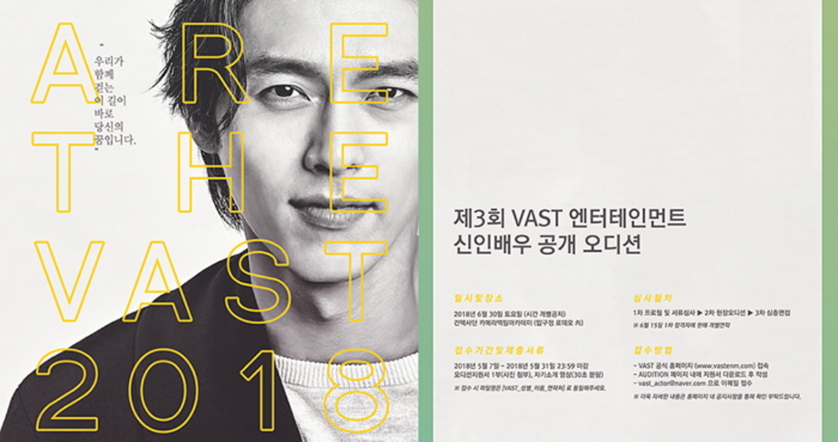 올해 제 3회를 맞이하는 'VAST 신인배우 공개오디션'은 5월 7일부터 31일까지 1차 서류접수가 진행되며, 서류 합격자에 한해 2차 현장 오디션이 6월 30일에 진행된다.