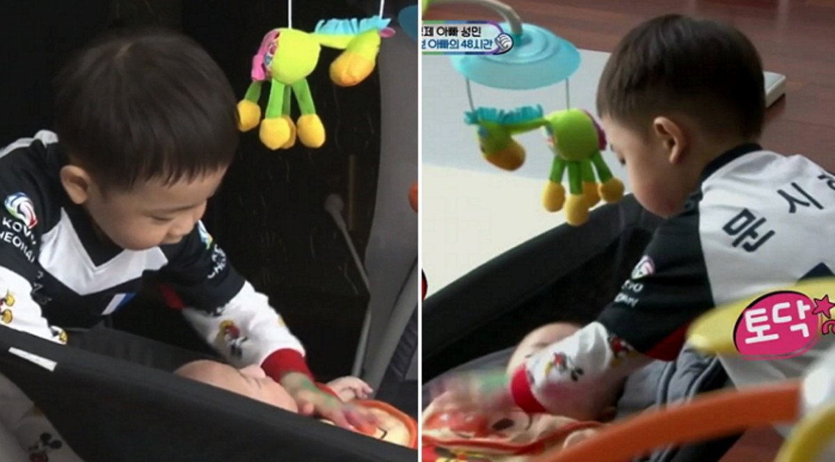 끓고 있는 젖병도 살펴야 하고 리호도 돌봐야 했던 문성민. 결국 "아빠 좀 도와줄래"라고 말하며 첫째 아들 시호에게 도움을 요청했다.