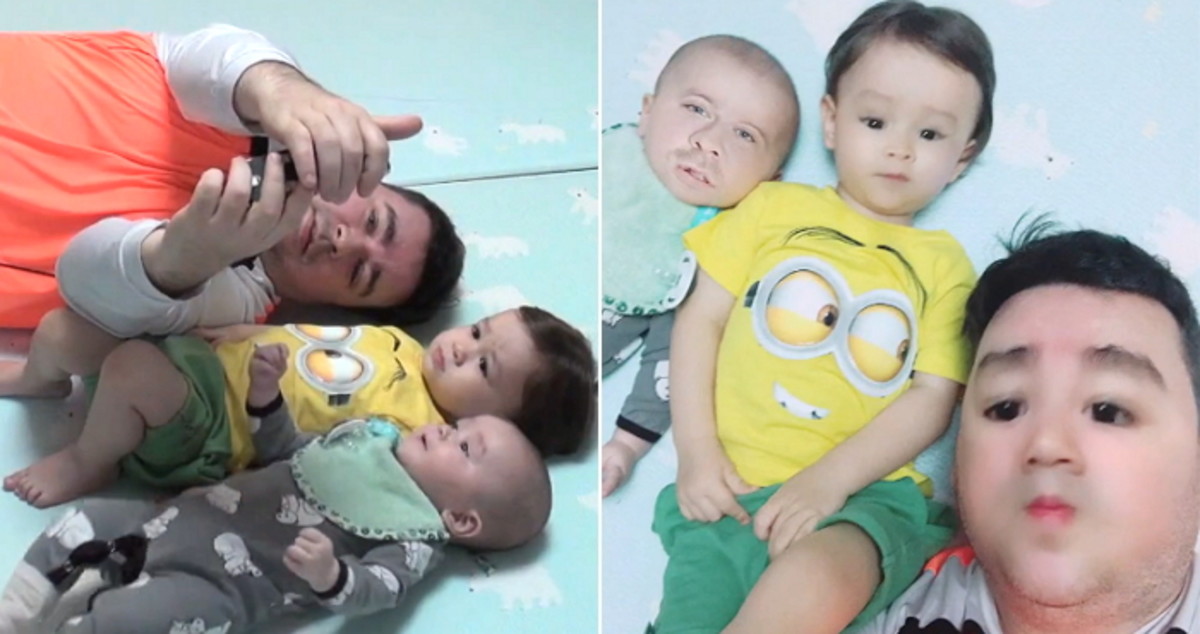 이후 샘 해밍턴, 윌리엄, 벤틀리 삼부자가 함께 얼굴 바꾸기 어플을 이용해 사진을 찍었다.