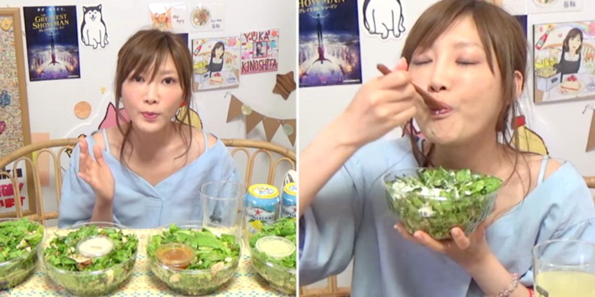 지난달 26일 일본 '먹방' 유튜버 키노시타 유우카는 자신의 공식 유튜브 채널에 '샐러드 3kg 먹을게요'라는 제목의 영상을 한 편 게시했다.