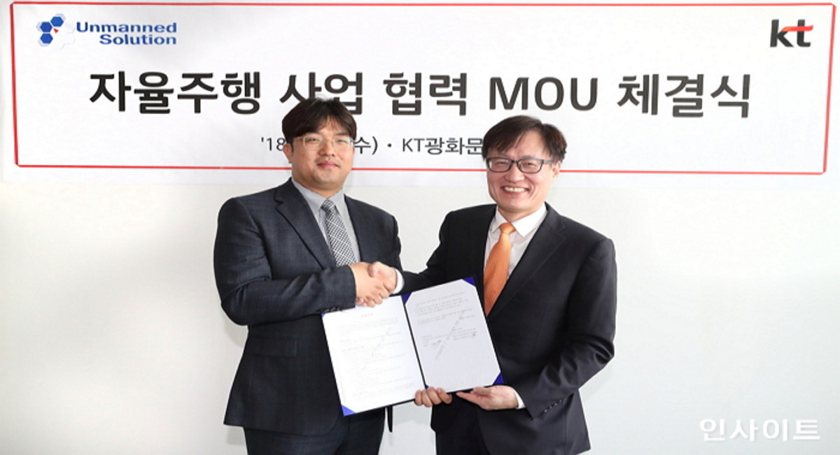 10일 KT는 서울 종로구 KT 광화문 사옥에서 자율주행 솔루션 기업 언맨드솔루션과 '자율주행 사업화를 위한 업무협약(MoU)'을 체결했다고 밝혔다.
