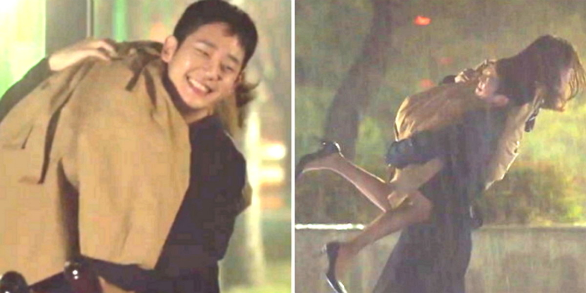 이날 정해인과 손예진은 쏟아지는 빗줄기 속에서 알콩달콩한 연인의 분위기를 연출했다.