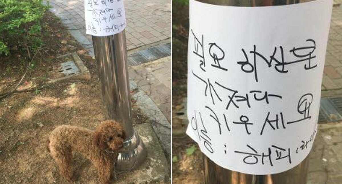중앙체육공원에 유기됐을 당시 강아지는 쇠 목줄에 목이 꽉 조인 상태였고 "필요하신 분 가져다 키우세요"라는 쪽지와 함께 버려져 있었다.