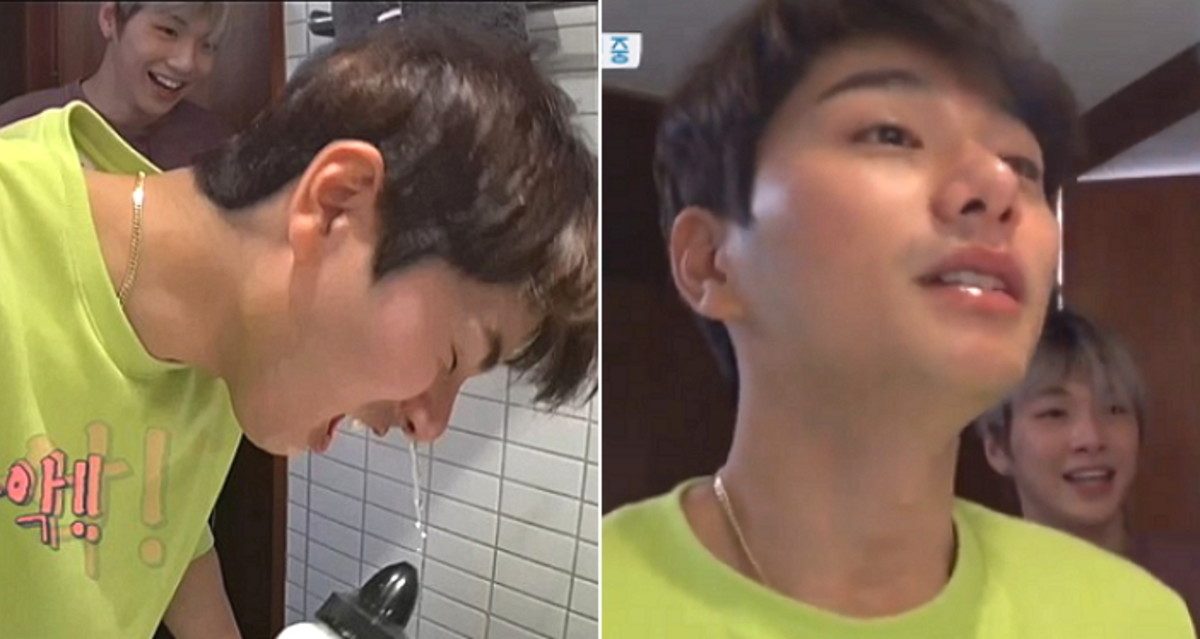 댄스까지 선보이며 양치를 마친 강다니엘은 "신기한 거 보여드릴까요? 재환이가 가르쳐준 건데"라며 '코세척' 시범을 보여줬다.