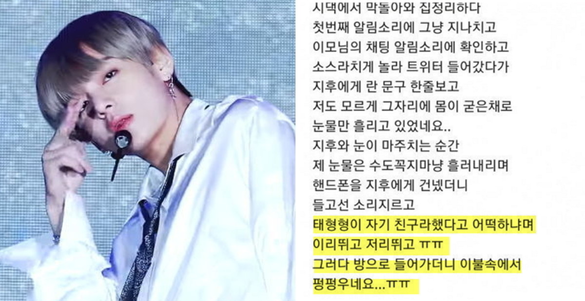 그런 지후 군을 염려한 어머니 A씨가 방탄소년단을 아들에게 소개했고, 이후 지후 군은 뷔를 친구라 생각하며 팬심을 갖기 시작했다.