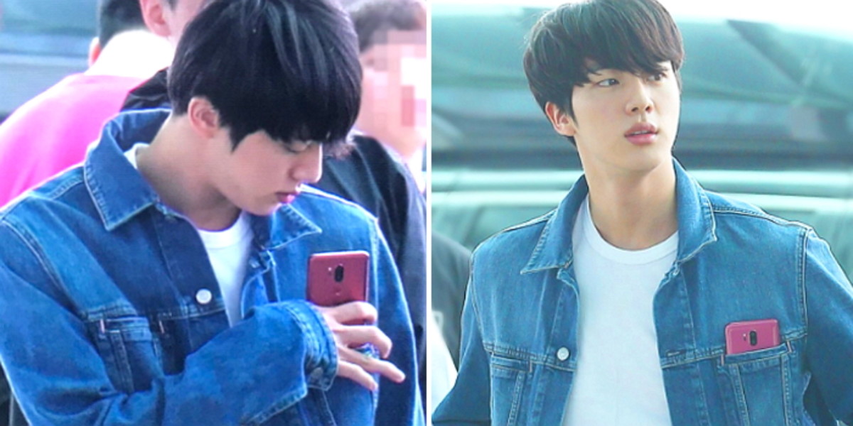 특히 진은 수많은 취재진과 팬들이 있는 가운데, 연신 자신의 핸드폰이 잘 보이도록 손에 들거나 청재킷 주머니에 넣어 보이는 모습이 포착됐다.