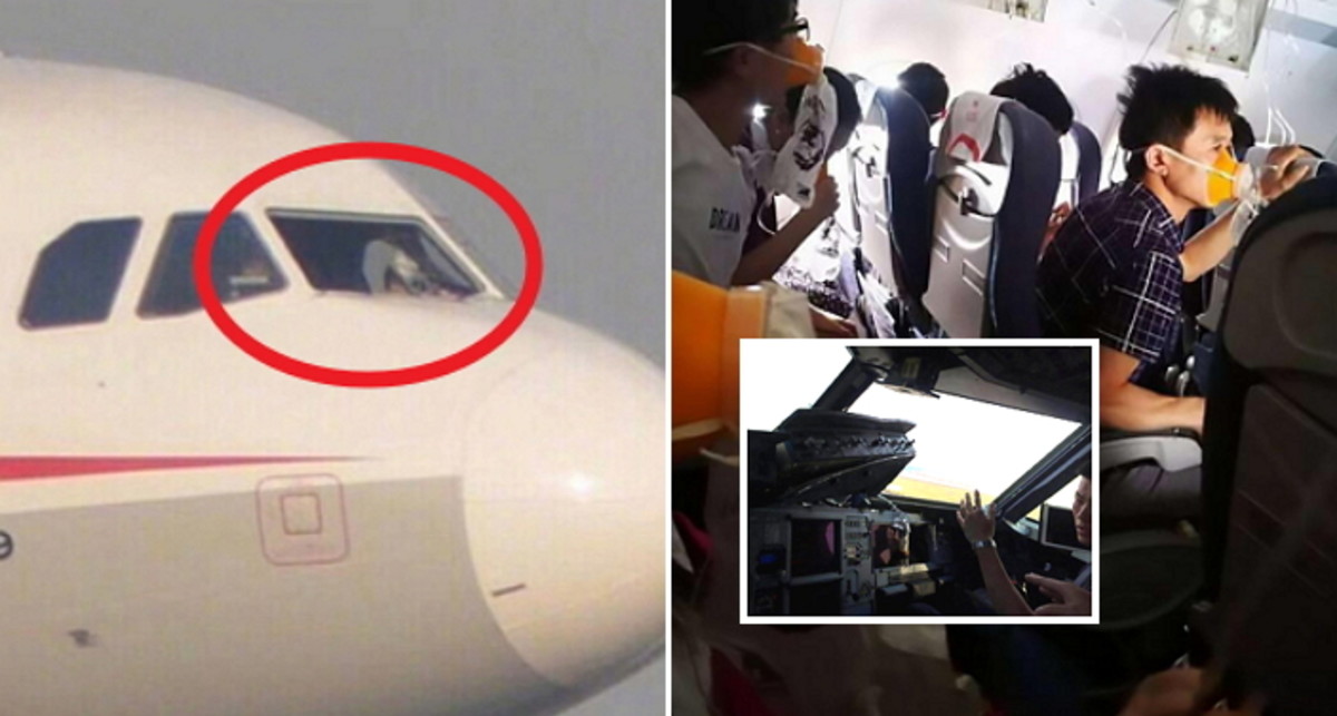 조종석 전면 유리가 모두 깨진 비행기에서 조종사는 창틀에 걸터앉아 목숨을 구했다 / weibo