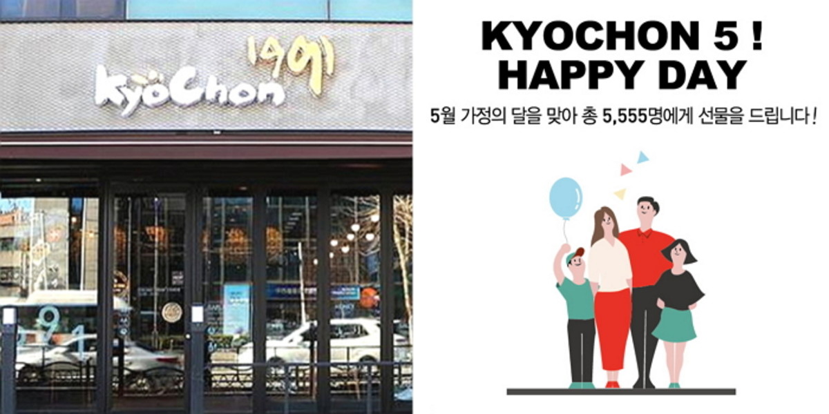 이번 교촌치킨의 '교촌5!해피데이'는 총 5,555명의 고객들에게 경품을 증정하는 특별한 이벤트다.