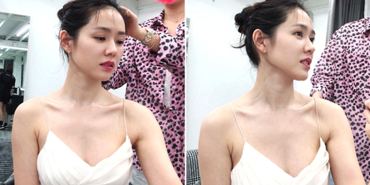 게재된 사진 속에는 순백의 드레스를 입은 채 머리 손질을 받고 있는 손예진의 모습이 담겼다.