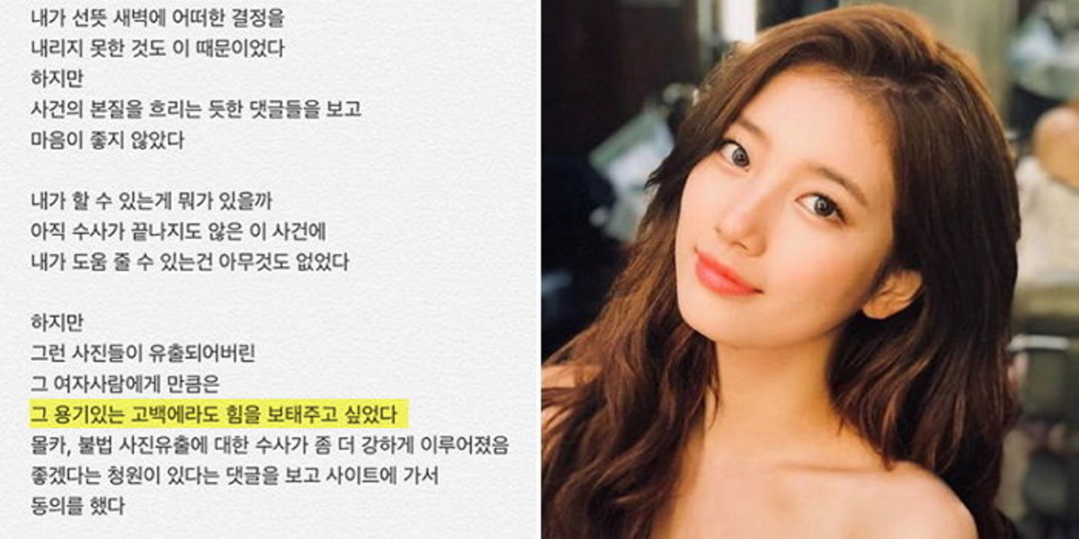 한편 수지는 같은 날 인스타그램을 통해 양예원 씨와 관련한 청와대 국민청원에 동의하는 영상을 게재한 바 있다.