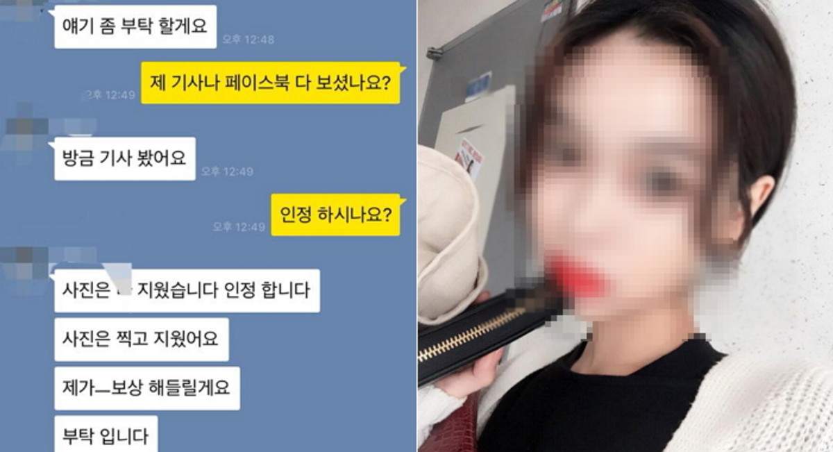 유씨가 직접 페이스북에 공개한 카카오톡 대화에서 실장은 "사진은 다 지운 상태"라며 자신의 과오를 인정한다고 전했다.