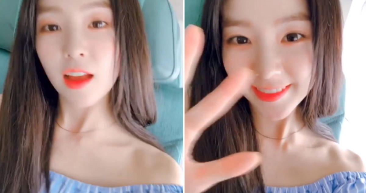 비행기 탑승 후 아이린이 직접 촬영한 셀프 영상에는 코랄 빛이 은은하게 감도는 화장법으로 '요정' 같은 매력을 뽐내고 있는 모습이 담겼다.
