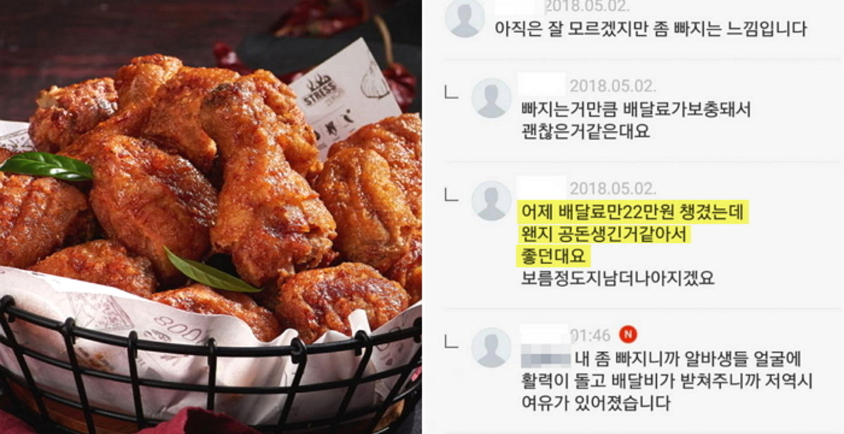 한 점주는 "어제 배달료만 22만원 챙겼는데 왠지 '공돈'이 생긴 것 같아서 좋다"고 털어놨다.