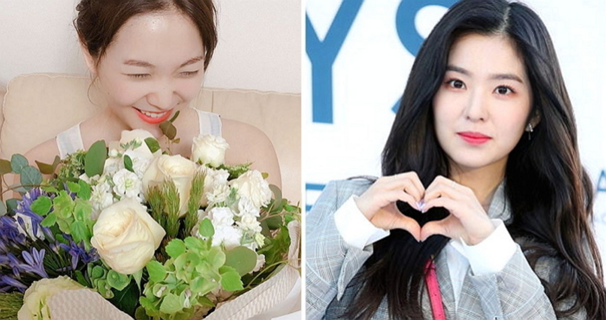 사진에는 행복한 표정으로 활짝 웃고 있는 예리와 장미 꽃다발, 아이린이 직접 손으로 쓴 편지가 담겨 있다.