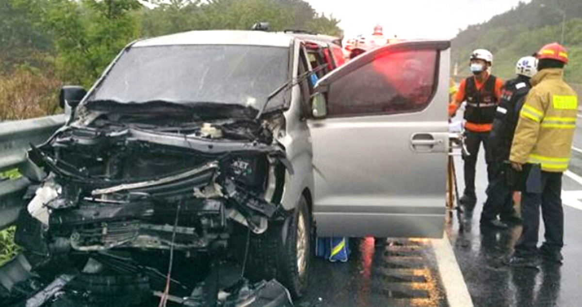 23일 오전 5시 50분께 전라북도 장수군 대전통영고속도로 통영 방향 덕유산휴게소 인근에서 승합차가 앞서가던 덤프트럭을 들이받는 사고가 났다.