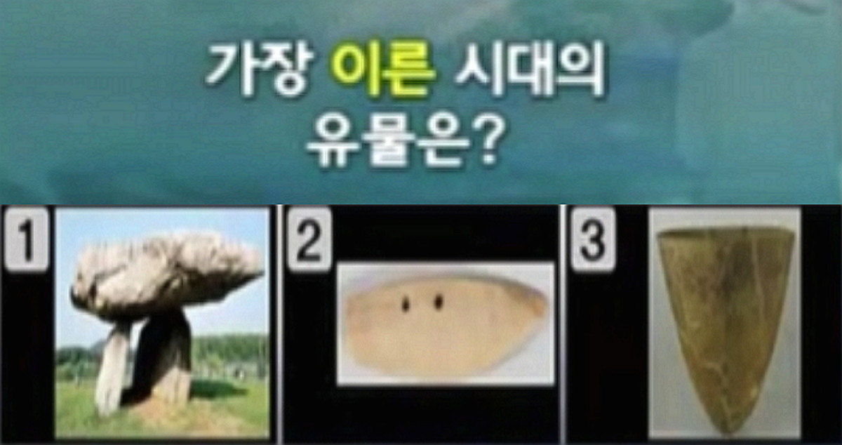그 문제는 바로 "(한반도에서) 가장 이른 시대에 등장한 유물은?"이라는 '한국사' 문제였다.