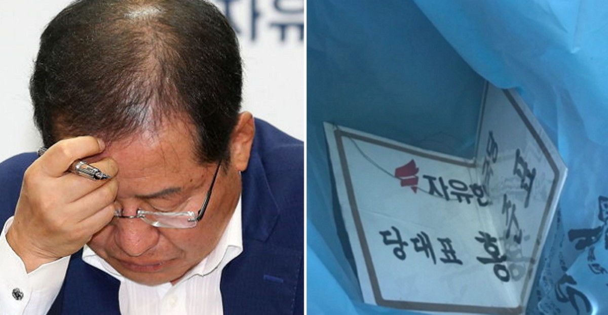 홍 대표의 이름표는 결국 쓰레기봉투에 담기는 신세가 됐다.