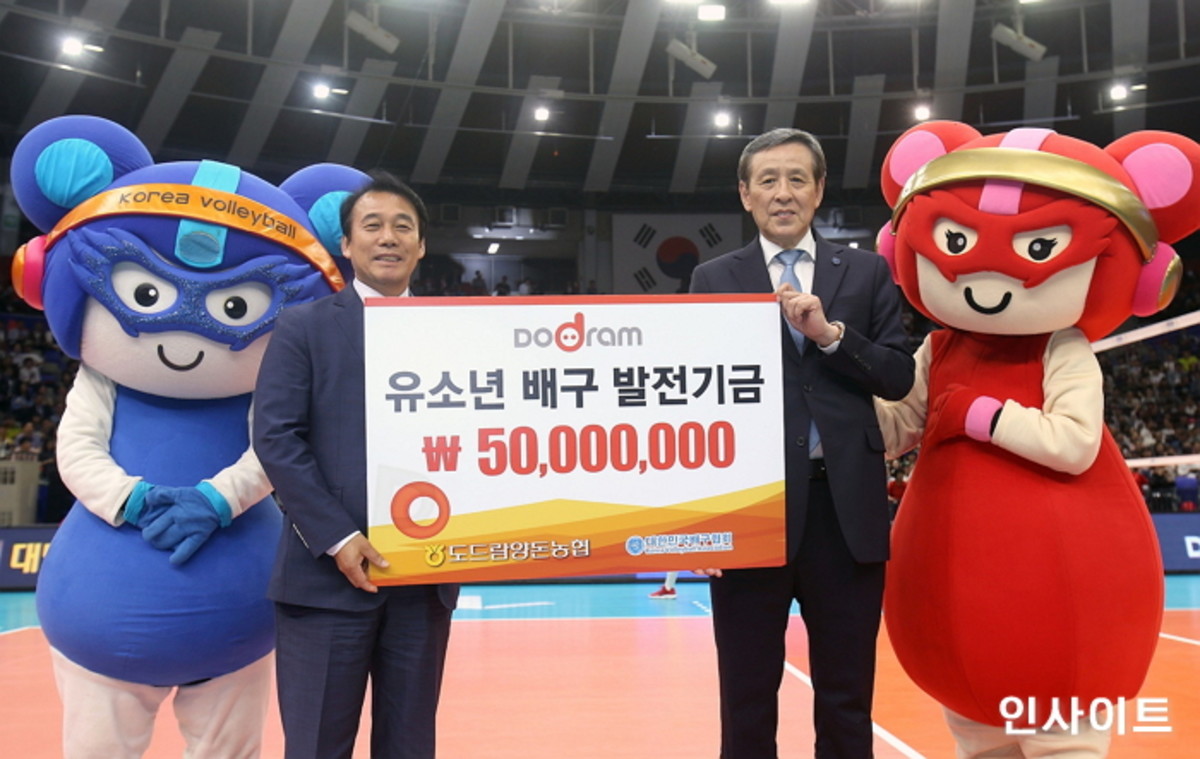 [인사이트] 김소영 기자 = 한돈 대표 브랜드 도드람이 유소년 배구 발전기금 5,000만 원을 기탁했다.