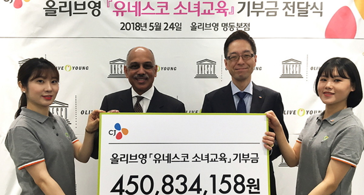 24일 CJ올리브네트웍스가 운영하고 있는 국내 대표 헬스앤뷰티 스토어 올리브영은 유네스코 소녀교육에 4억 5000만원을 기부했다고 밝혔다.