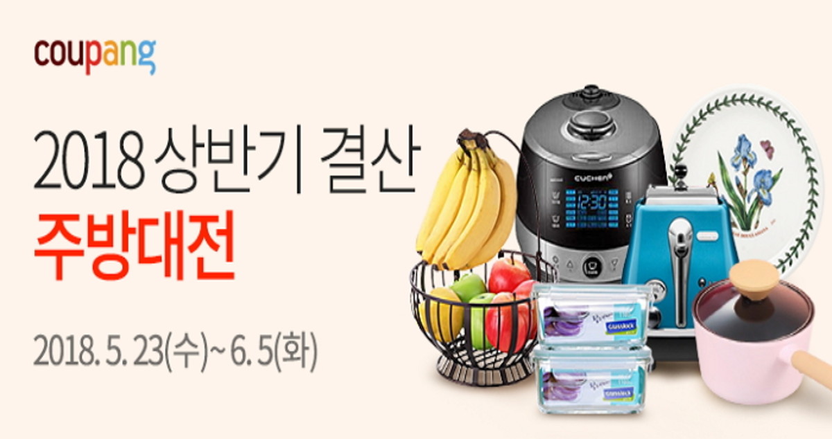 이와 함께 쿠팡은 '2018 상반기 결산 주방대전' 오픈을 기념해 인기 주방용품을 파격적인 할인혜택이 있는 '한정수량특가'를 진행한다.
