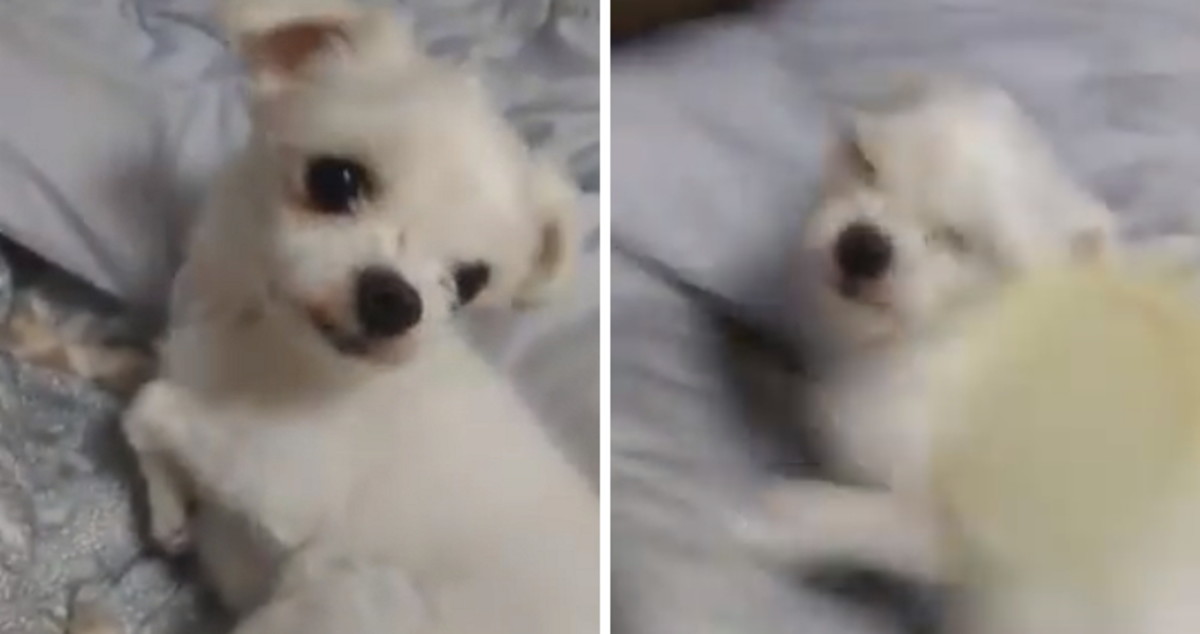 물건을 집어 든 견주를 보며 강아지는 낑낑거리며 눈을 감는 등 스트레스 이상 증상을 보였다.