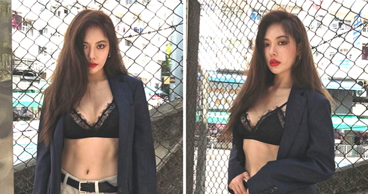 치명적인 섹시 아이콘 '현아'가 재킷 안에 검은색 '브래지어'만 입은 패션을 선보였다.