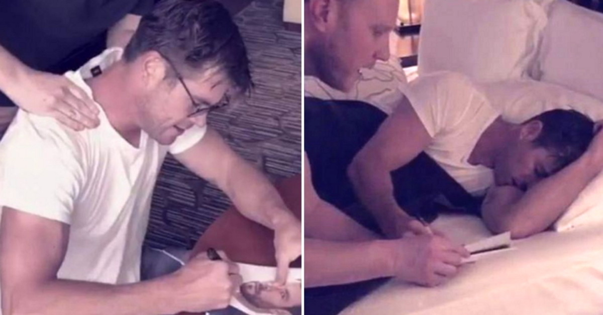 [인사이트] 황비 기자 = '토르' 크리스 헴스워스가 자면서도 사인을 멈추지 않는 모습으로 팬을 향한 사랑을 증명했다.