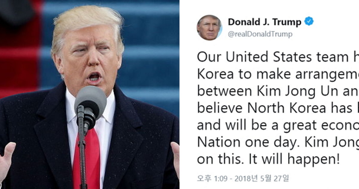 28일(한국 시간) 트럼프 미국 대통령은 자신의 트위터를 통해 북미정상회담을 위한 미국 실무 대표단이 판문점에 도착했다고 밝혔다.
