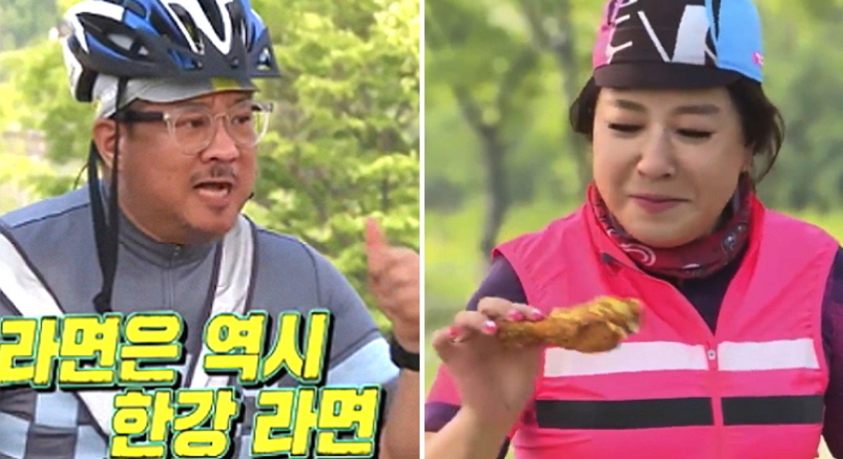 노사연, 이무송 부부는 돗자리까지 챙겨와 한강에서 꼭 먹어야 하는 즉석 라면과 김밥, 조각 치킨 등으로 허기진 배를 채웠다.
