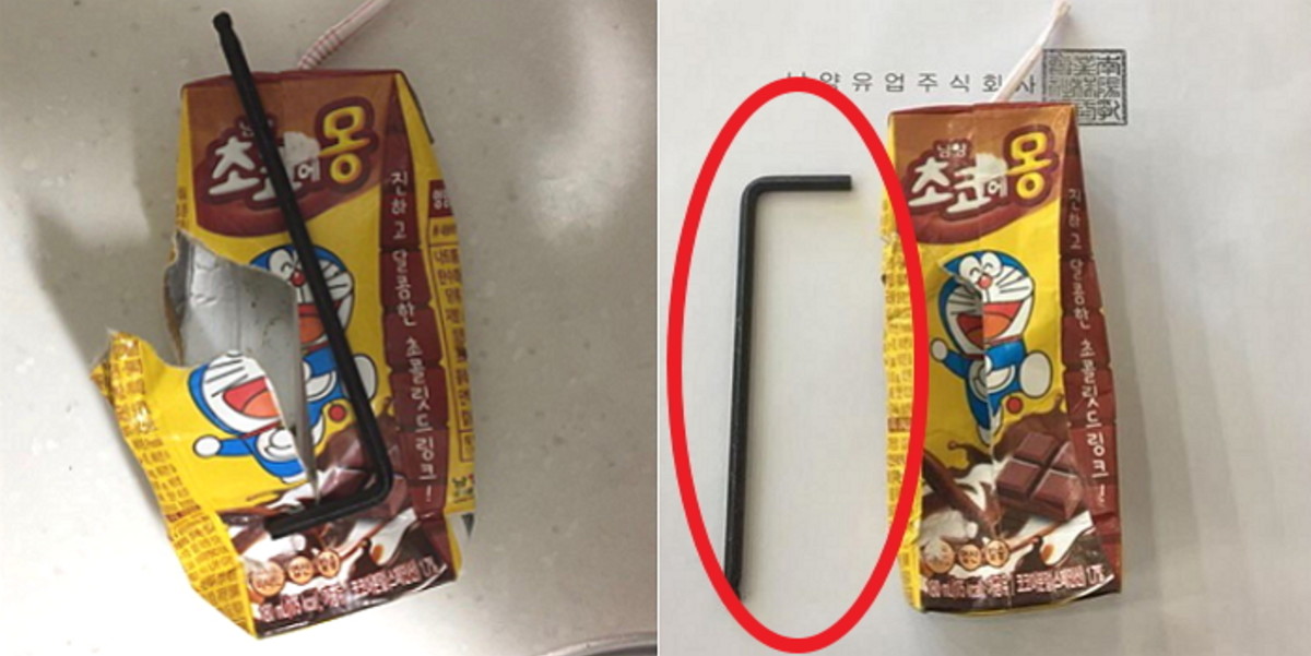 [인사이트] 윤혜경 기자 = 유제품 전문업체 남양유업의 인기 음료 '초코에몽'에서 11cm에 달하는 금속이 나왔다는 소비자 주장이 제기됐다.