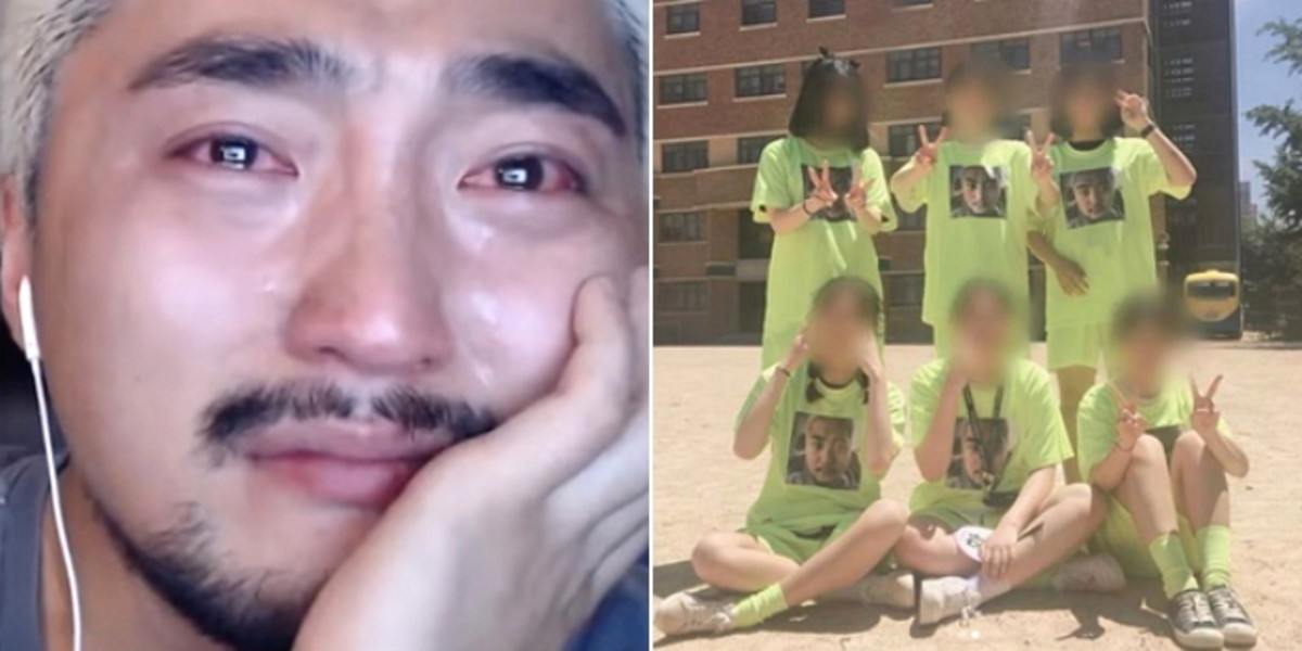 공개된 사진 속에는 큰 눈에 눈물이 그렁그렁 맺힌 유병재의 '눈물 셀카'가 프린트된 반티를 입은 두 학교 학생들의 모습이 담겼다.