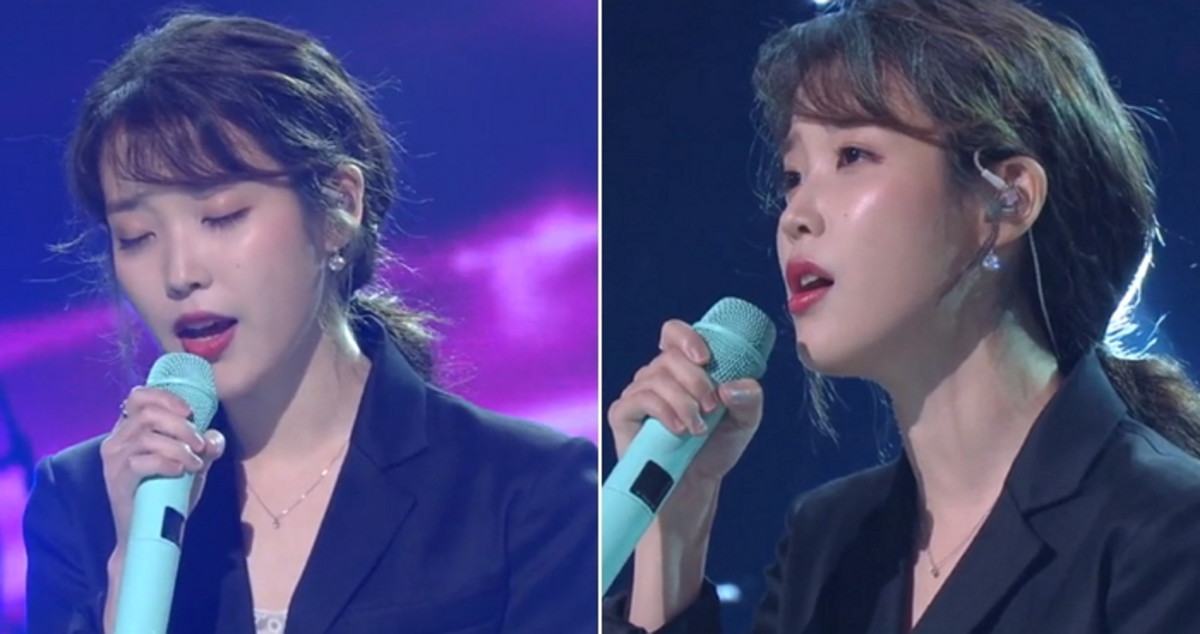 아이유는 눈을 감은 채 "멀리 배웅하던 길 여전히 나는 그곳에 서서 그대가 사랑한 이 계절의 오고 감을 봅니다"라는 가사를 읊조리듯 한 음씩 불렀다.