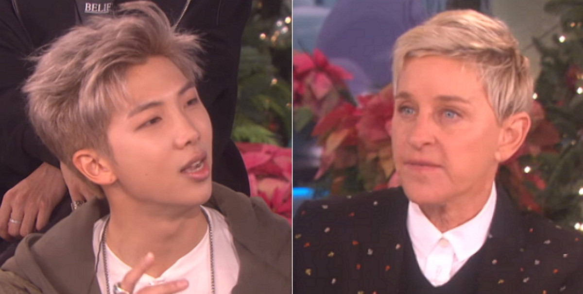 (좌) BTS 리더 RM (우) NBC '엘렌쇼' 진행자 엘렌 드제너러스 / YouTube 'TheEllenShow'
