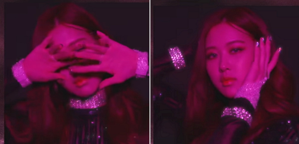 로제는 보랏빛이 가득한 조명아래 반짝거리는 액세사리를 착용한 모습으로 카메라를 바라보며 약간의 손동작 안무를 선보인다.