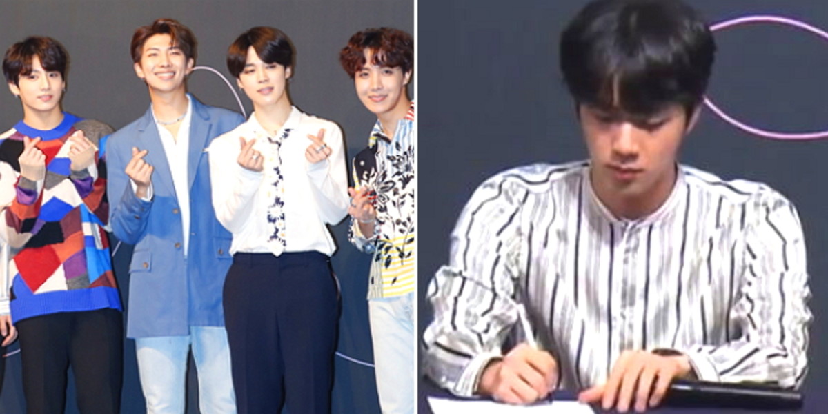 또한 방탄소년단은 테이블 위에 물병들을 직접 치우며 기사 사진을 위한 배려도 보였다.